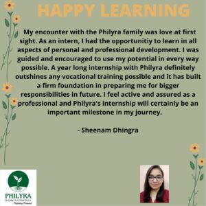 Service to the society is the guiding canon for Philyra Training and Consultancy. It aims to evoke and support the evolution of individuals, both in their personal and professional spheres, thus enabling them to scale the pinnacle of success. Philyra will achieve this goal by imparting appropriate knowledge and skills to the individual through training modules, using creative writing as their primary methodology of instruction. Philyra Training and Consultancy has been founded with a vision to bridge the gap between the potential and performance of individuals.